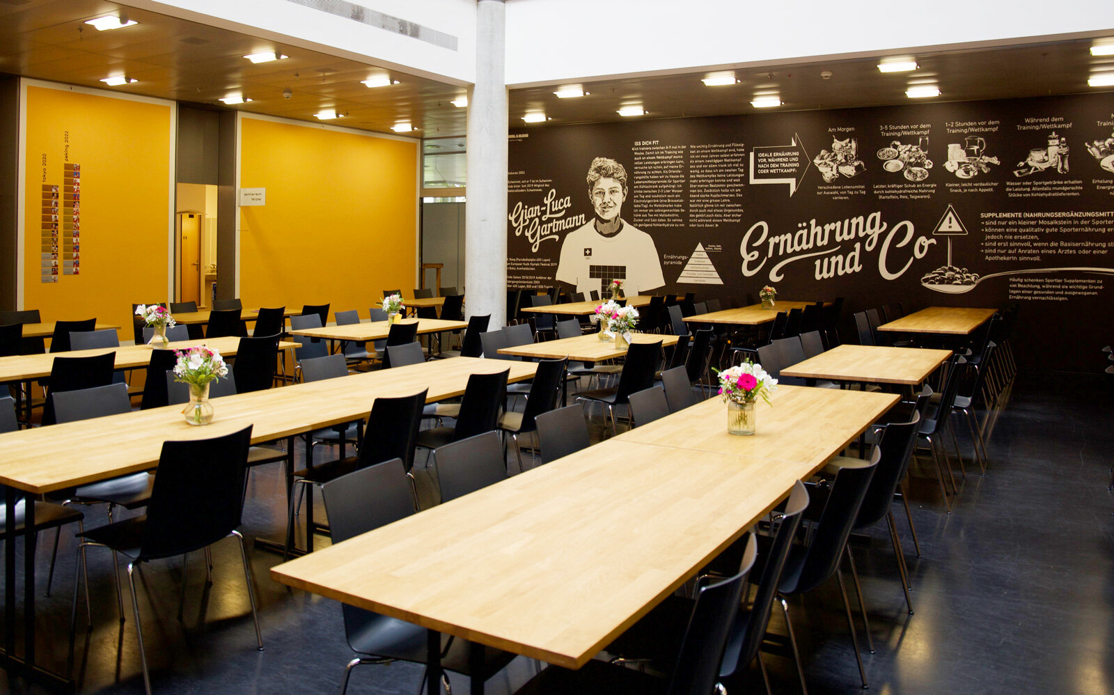 Neben den einzelnen Eventräumen steht Ihnen das Begegnungsrestaurant «Hall of Fame» mit seiner sonnenbeschienenen, überdeckten Aussenterrasse zur Verfügung – ausgewogenes und schmackhaftes Essen zu fairen Preisen. Die «Hall of Fame» hält das, was sie verspricht: Die Wände sind bestückt mit Medaillenspiegeln der Olympischen Spiele seit 1896 und werden laufend aktualisiert. Umgeben von Erfolgsmeldungen aus der Sportgeschichte beflügelt dies jeden Hausbesucher und regt interessante Gespräche an.
